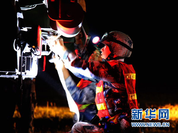 空軍地空導彈兵第二營參加“藍盾”演習,官兵在執行夜間訓練任務時做緊急戰斗準備(2016年7月4日攝)。新華社發