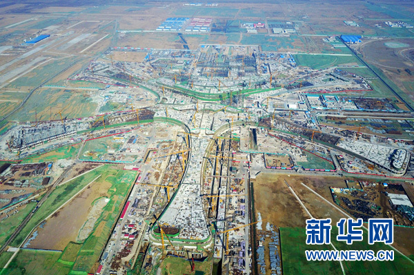 這是正在施工的北京新機(jī)場主航站樓(2月24日攝)。 新華社記者 鞠煥宗 攝