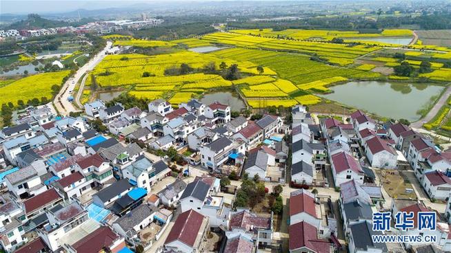這是在江蘇省南京市高淳區椏溪國際慢城拍攝的油菜花田和民居(3月28日攝)。新華社記者 李響 攝