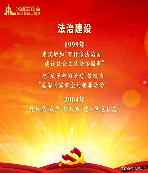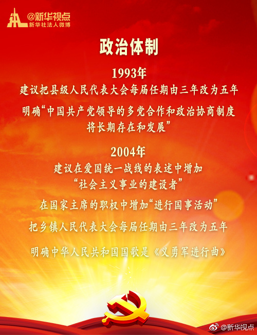新華網北京1月20日電 黨的十九屆二中全會1月18日至19日在京召開,會議審議通過了《中共中央關于修改憲法部分內容的建議》。現行“八二憲法”公布實施后,根據我國改革開放和社會主義現代化建設的實踐與發展,分別于1988年、1993年、1999年、2004年進行了4次修改。每一次都是由黨中央向全國人大常委會提出憲法修改建議,經過法定程序使黨的主張和人民意愿成為國家意志。(據新華視點微博)