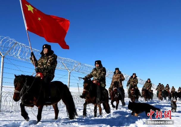 12月30日,駐守在祖國(guó)西北邊陲的武警新疆阿勒泰邊防支隊(duì)托普鐵熱克邊防派出所官兵,在中哈邊境一線的雪原上巡邏踏查。王友波 攝