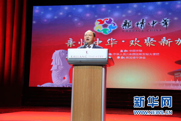 中國駐新加坡使館臨時代辦房新文在致辭中表示,“親情中華”藝術團千里迢迢來到新加坡,為我們帶來精彩的藝術盛宴和美好祝福,增進了中新兩國人民的情誼,增強了中新兩國文化交流的活力。