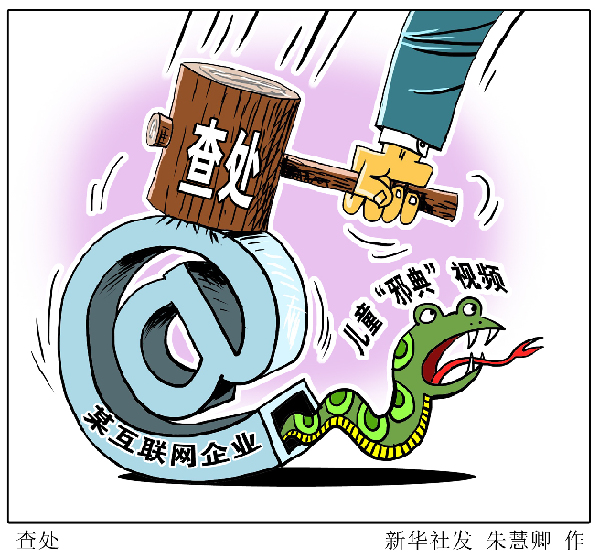 按照全國“掃黃打非”工作小組辦公室的部署要求,近期,廣東、北京兩地“掃黃打非”部門深入查辦涉兒童邪典視頻案件。優酷、愛奇藝等一批為兒童“邪典”視頻提供傳播平臺的互聯網企業被依法查處。新華社發 朱慧卿 作