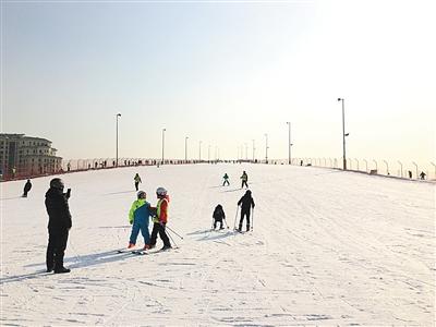 2月6日下午,位于大興區的龍熙滑雪場內,上百名滑雪者在此滑行。新京報記者注意到,許多滑雪初學者在雪道下方的緩沖區域內練習,一旁練習道上的滑雪者寥寥無幾。“在哪兒都一樣。”一名在緩沖區域雪道上逆行、自稱沒有任何滑雪基礎的滑雪者稱。