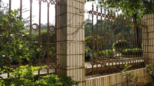 在陽光綠城小區,小區臨街的一面欄桿被人為剪斷,只是用鐵絲臨時纏繞