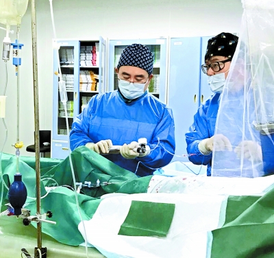 北京友誼醫院心血管中心醫生丁曉松在手術中搶救急性心梗患者。