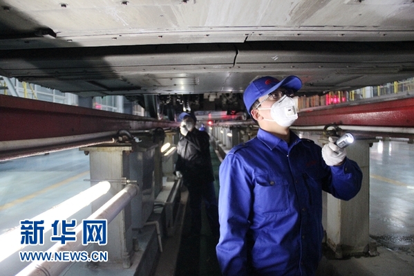 石家莊動車運用所的檢修工正在作業。新華網 金佳緒 攝