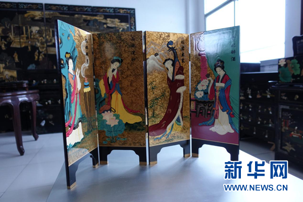 徽漆屏風“四大美女圖”。新華網 卓越 攝