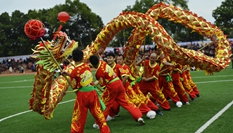 記者看到,大黃灘舞獅隊的節目融合了雜技的內容,“雄獅過橋”“雄獅走鋼絲”等節目驚險刺激,需要非常扎實的基本功。
