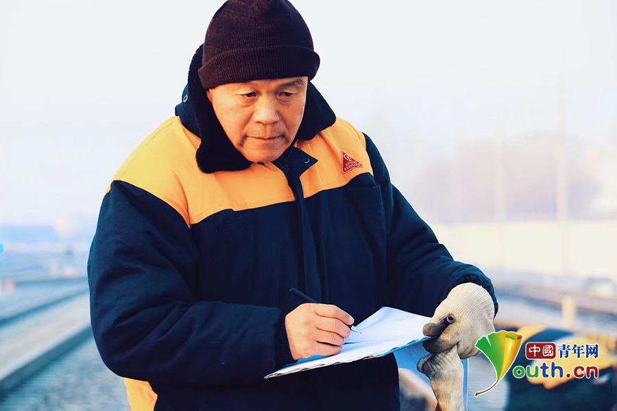 邰芳鵬正在記錄信號設備測試信息。春運一開始,他便和工友們利用天窗時間,開展信號設備檢查、巡視、養護工作。中國青年網通訊員 姚旭東 攝