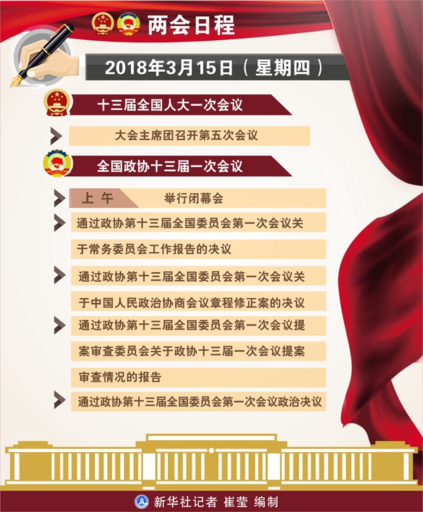 十三屆全國人大一次會議15日安排代表休息。大會主席團召開第五次會議。