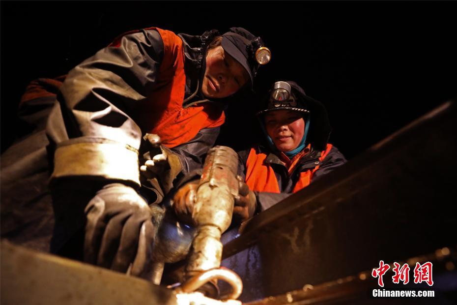 兩位鐵路職工協力合作擰緊枕木螺栓。文/汪翰 李利群 圖/汪翰