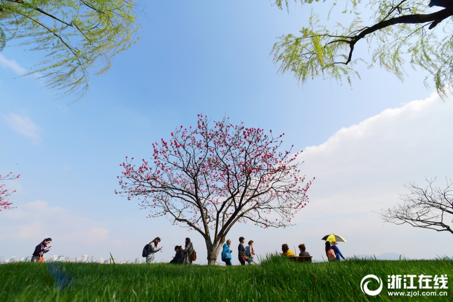 3月26日,雨后西湖再度晴歸。西湖白堤,正是桃紅柳綠時。(浙江在線拍友 里爾 攝)