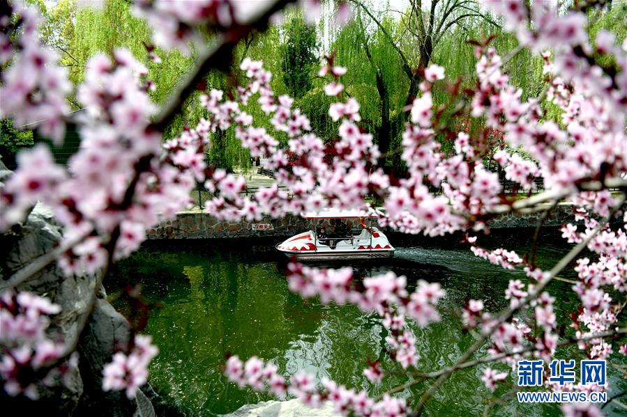 3月28日,游客在鄭州市人民公園泛舟。春天的鄭州氣象更新、萬物復蘇,在春意盎然的人民公園內,游人乘輕舟暢游賞花,享受美好春光。 新華社記者朱祥攝