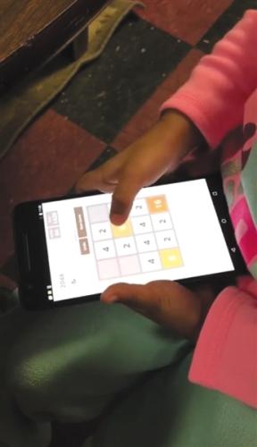 一名兒童正在安卓系統的智能手機上玩“2048”游戲,進行iCare軟件的實驗。受訪者供圖 圖片來源:新京報