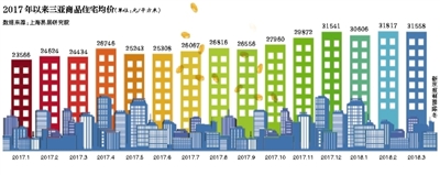 不過,海南房價并未得到有效抑制,反而持續上漲。據克而瑞數據統計,2017年1-12月,三亞商品住宅成交均價從23566元/㎡上漲至31541元/㎡;1-11月,海口商品住宅成交均價從10444元/㎡上漲至16317元/㎡。
