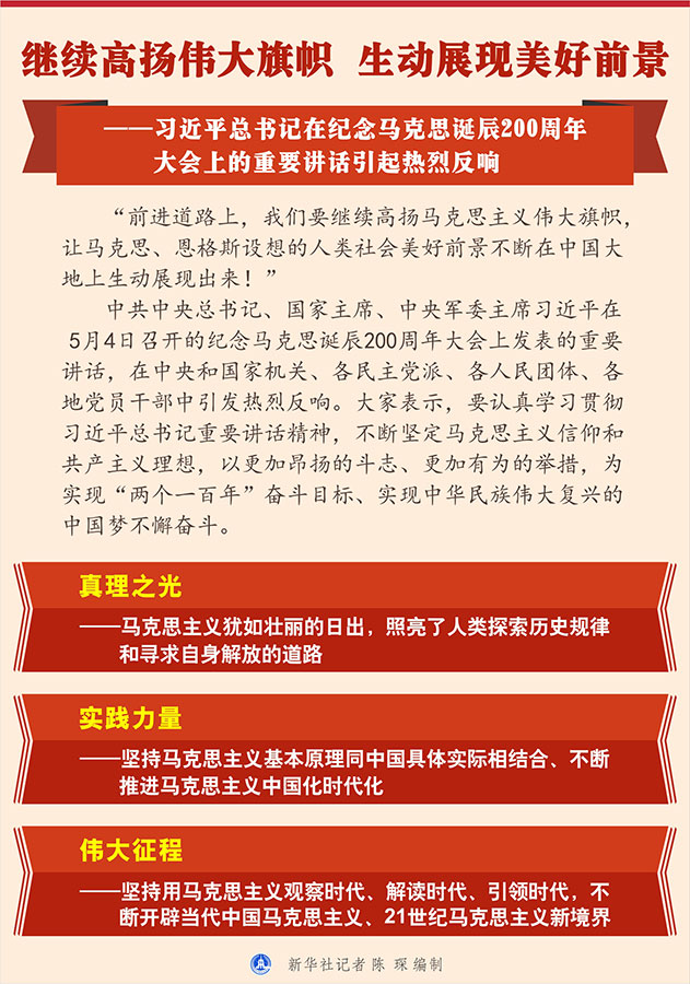 新華社北京5月4日電 題:繼續高揚偉大旗幟 生動展現美好前景——習近平總書記在紀念馬克思誕辰200周年大會上的重要講話引起熱烈反響