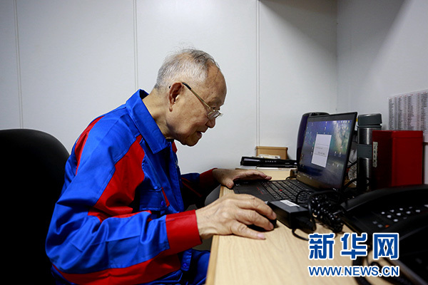 汪品先院士在“探索一號(hào)”科考船上工作(5月11日攝)。新華社記者 張建松 攝