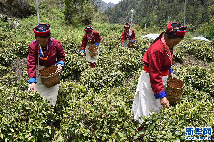 村民在勒鄉茶園采茶(5月12日 攝)。新華網記者 陳琳 攝