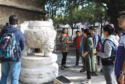 2017年10月,北京石刻藝術博物館館員在研究之余還免費為觀眾講解。據悉,新出臺的《博物館服務規范》對博物館講解服務作出規范,要求講解員講解時應與觀眾互動交流,并解答觀眾問題。新京報記者 浦峰 攝