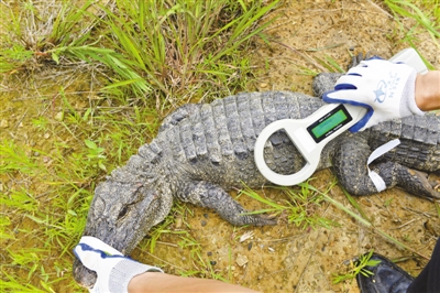 汪仁平說,2006年放歸的一條雄性揚子鱷走出了放歸區域,跑到3公里外一個魚塘筑巢。“通過無線電發射器,這條揚子鱷被找到了。”
