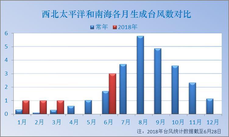 到目前為止,今年西北太平洋和南海已經(jīng)有6個臺風(fēng)生成,1個臺風(fēng)登陸我國,常年1-6月平均會生成4.1個臺風(fēng),登陸0.63個。實際上今年無論生成臺風(fēng)個數(shù)還是登陸個數(shù)都比常年平均偏多。