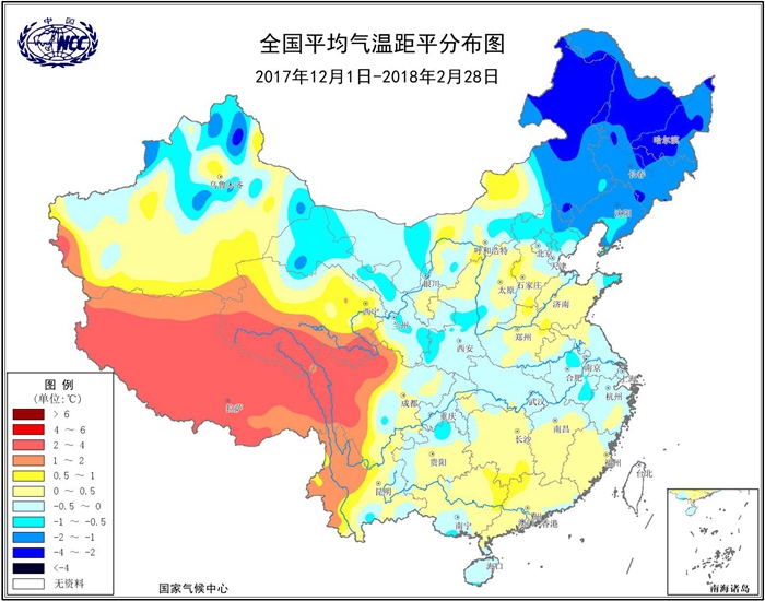 周兵:從氣候異常信號來看,我國于2017年10月-2018年3月出現(xiàn)一次弱的拉尼娜事件,一般拉尼娜對我國的直接影響就是冷冬,然而剛剛過去的冬季,全國平均氣溫-3.2℃,較常年同期(-3.4℃)還偏高0.2℃。雖然整體氣溫較常年平均偏高,但從氣溫距平分布來看,除青藏高原大部氣溫較常年同期偏高2~4℃外,全國其余地區(qū)氣溫接近常年或偏低,其中東北及內(nèi)蒙古東北部、新疆北部等地偏低1~2℃,局地偏低2~4℃。