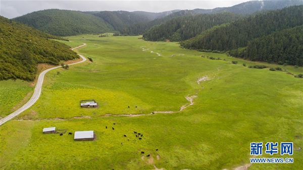 普達措國家公園彌里塘片區風景(7月18日無人機拍攝)。 新華社記者 胡超 攝