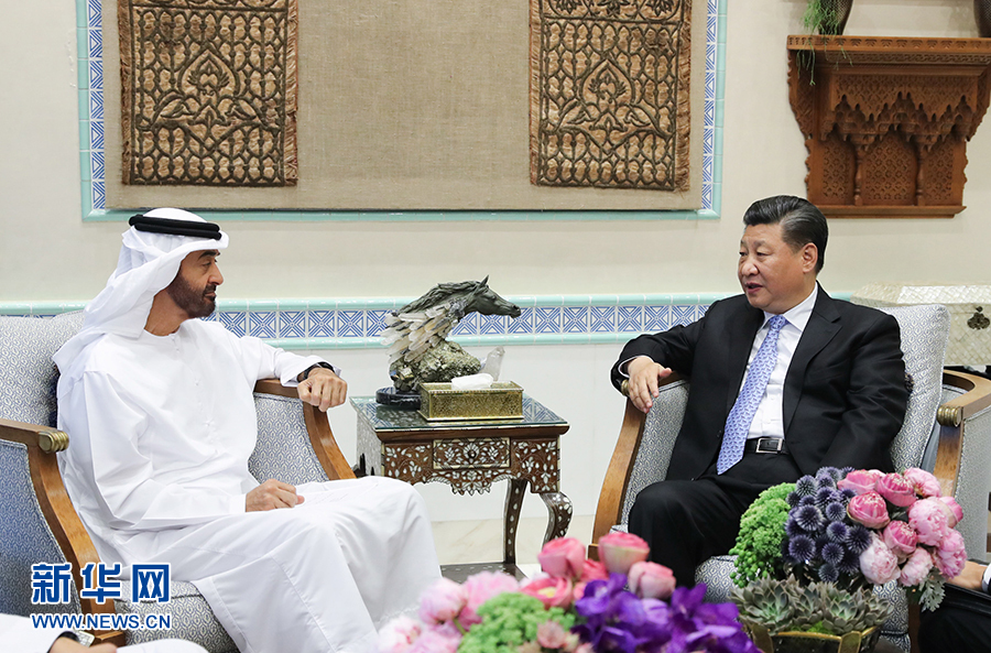 7月20日晚,國(guó)家主席習(xí)近平應(yīng)阿聯(lián)酋阿布扎比王儲(chǔ)穆罕默德邀請(qǐng),到王儲(chǔ)官邸作客。雙方在輕松友好氣氛中就中阿關(guān)系以及共同關(guān)心的問(wèn)題深入交換意見(jiàn)。 新華社記者 謝環(huán)馳 攝