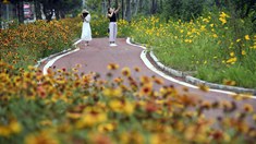 8月4日,幾位小朋友走在福建向金門供水工程取水地晉江龍湖湖畔。新華社記者 姜克紅 攝