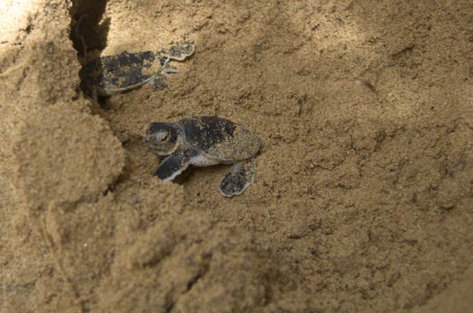 斯里蘭卡綿長(zhǎng)的海岸線是海龜?shù)奶烊痪奂兀欢缃襁@一海洋“活化石”的數(shù)量正在急劇減少。原本,小海龜?shù)某苫盥示蜆O低,大約1000只海龜卵才能孵化出1只小海龜。近年來(lái)海龜生存越發(fā)艱難,被漁網(wǎng)纏住、偷捕行為屢禁不止以及度假村的擴(kuò)張等,都讓剛出殼的小海龜在回歸大海的短短路途中喪命。