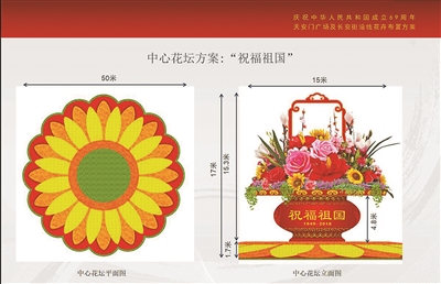 今天凌晨,兩輛130噸吊車駛入天安門廣場,把花盤緩緩吊裝到籃體上,中心花壇的“真容”終于顯現出來。