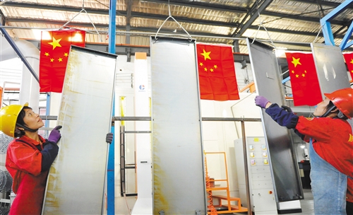 圖② 9月30日,江西省新余市渝水區珠珊鎮板橋工業園,江西劍安消防設備有限公司的生產車間里,員工忙生產,為國慶獻禮。 鐘婷 攝