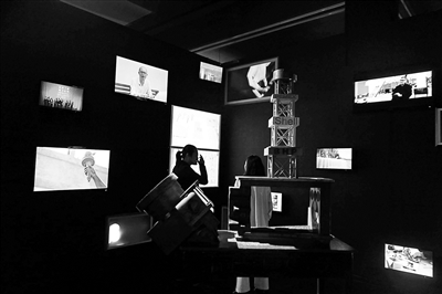 黑色的背景營造出“時光隧道”的感覺、記錄年代關鍵詞的40個燈箱在“隧道”一側亮起,伴隨著參觀者的腳步,從1977年緩步走到2018年。“隧道”的另一側則是與這些關鍵詞相關的藝術發展進程中的重要作品。而在展廳的中間,還陳列了一些珍貴的老物件。這是正在798國際藝術交流中心展廳舉辦的“行進中的歷史”,用年代記錄了藝術領域在改革開放以來的發展進程。