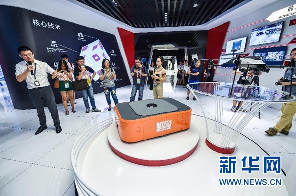 杭州??低晹?shù)字技術股份有限公司工作人員向記者介紹公司研發(fā)的物流機器人(2016年9月2日攝)。新華社記者 徐昱 攝