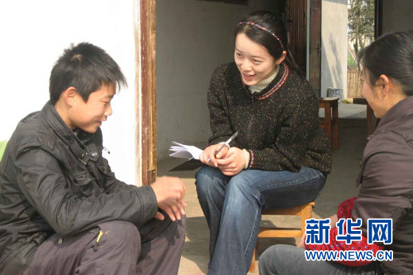圖為王健(中)2011年參加“新春走基層”活動時在安徽農村采訪。