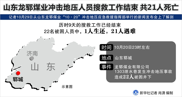 圖表:山東龍鄆煤業(yè)沖擊地壓人員搜救工作結(jié)束 共21人死亡 新華社記者 肖瀟 編制