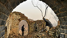 北京延慶:冬日養護古長城