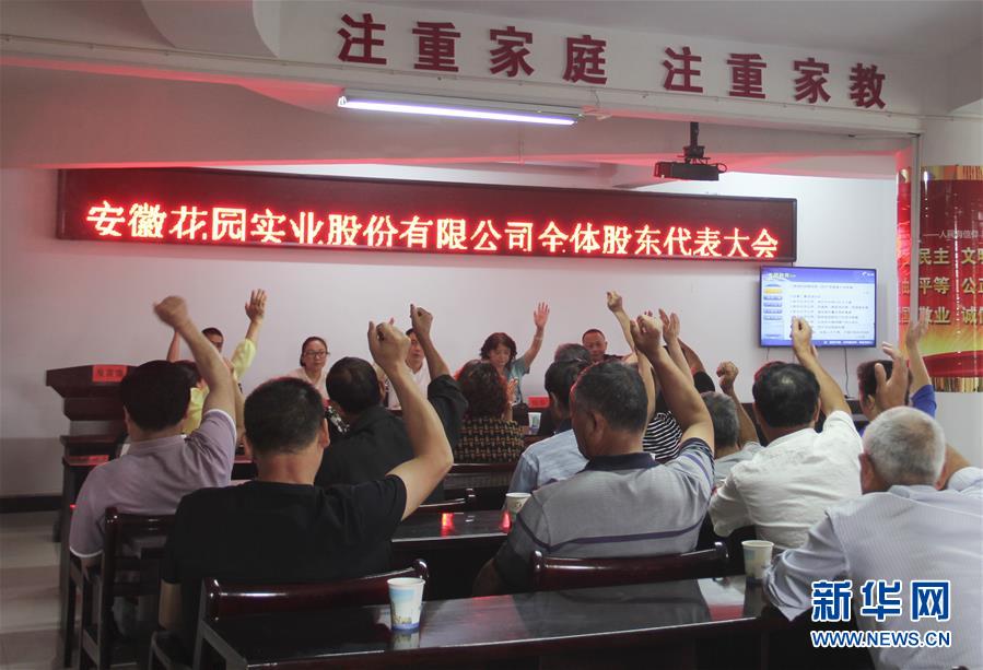 在安徽宣城花園村,來自安徽花園實業股份有限公司的股東全票通過股權激勵方案(2017年10月27日攝)。 新華社發