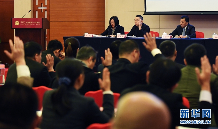 12月1日,劉國梁(后排中)和與會代表在換屆投票環節舉手表決。 新華社記者陶希夷攝