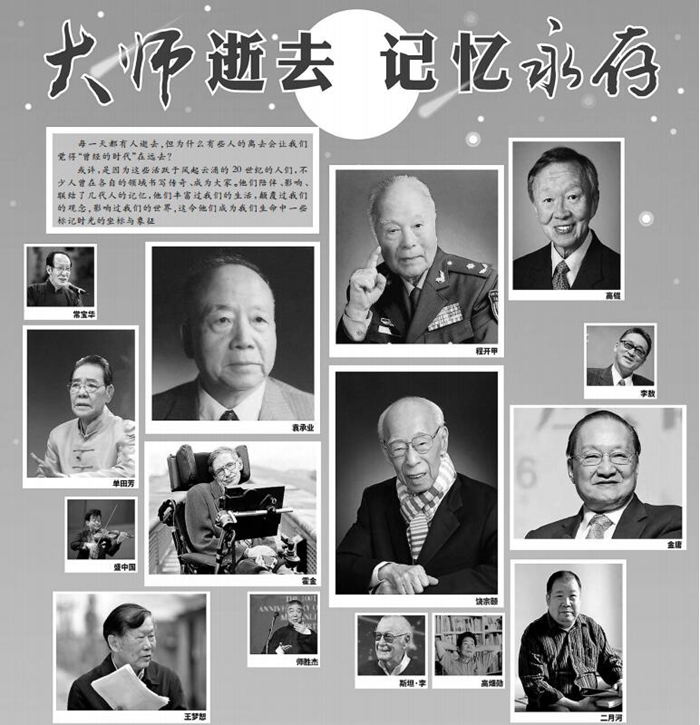2018年,離我們而去的名人似乎有點多,霍金、饒宗頤、李敖、程開甲、單田芳、金庸、二月河……一個個熟悉名字的遠去,讓很多人內心涌起陣陣離別的惆悵。