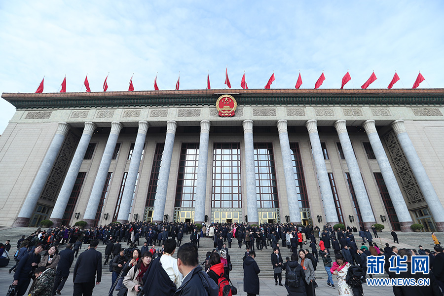 ??? 3月5日,第十三屆全國人民代表大會第一次會議在北京人民大會堂開幕,圖為人民大會堂外景。?新華網/中國政府網 翟子赫?攝