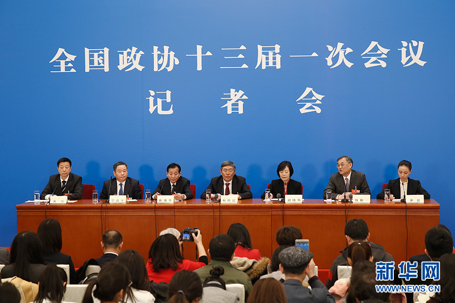 全國政協(xié)十三屆一次會議3月8日15:00在人民大會堂新聞發(fā)布廳舉行第二場記者會,邀請中央財經(jīng)領(lǐng)導(dǎo)小組辦公室副主任楊偉民,中國進(jìn)出口銀行董事長、黨委書記胡曉煉,農(nóng)業(yè)部原副部長陳曉華,全國工商聯(lián)副主席、清華大學(xué)經(jīng)濟管理學(xué)院院長錢穎一,中國中化集團(tuán)有限公司黨組書記、董事長寧高寧就推動經(jīng)濟高質(zhì)量發(fā)展回答記者提問。圖為記者會現(xiàn)場。新華網(wǎng)/中國政府網(wǎng) 翟子赫 攝?