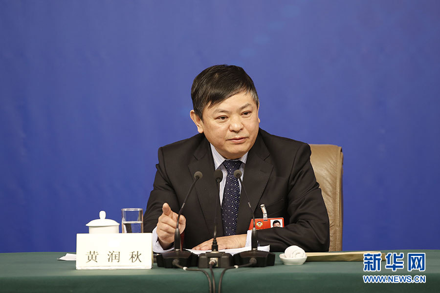 3月10日8時45分,全國政協十三屆一次會議將在梅地亞中心多功能廳舉行記者會,邀請5位全國政協委員就“提高保障和改善民生水平”回答記者提問。圖為黃潤秋回答記者提問。新華網/中國政府網 陳杰 攝
