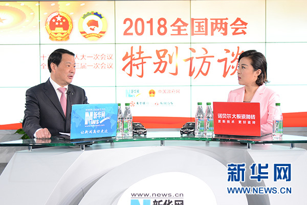 全國人大代表,中建材蚌埠玻璃工業設計研究院院長彭壽做客新華網2018全國兩會特別訪談 新華網楊濛 攝