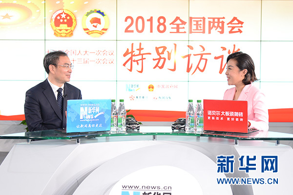 全國人大代表、張家界市市長劉革安做客新華網(wǎng)2018全國兩會特別訪談。新華網(wǎng)楊濛 攝