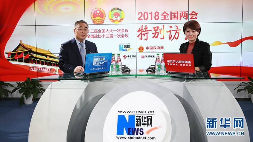 3月12日,全國人大代表,中國中醫(yī)科學(xué)院院長、天津中醫(yī)藥大學(xué)校長張伯禮院士(左)做客新華網(wǎng)2018全國兩會特別訪談。新華網(wǎng) 楊锘攝