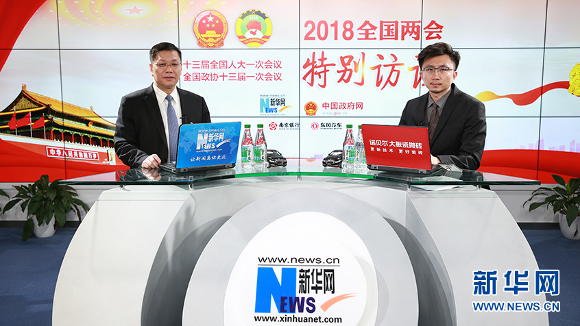 3月12日,全國(guó)人大代表、浙江華海藥業(yè)股份有限公司董事長(zhǎng)陳保華(左)做客新華網(wǎng)2018全國(guó)兩會(huì)特別訪談。新華網(wǎng) 楊锘攝