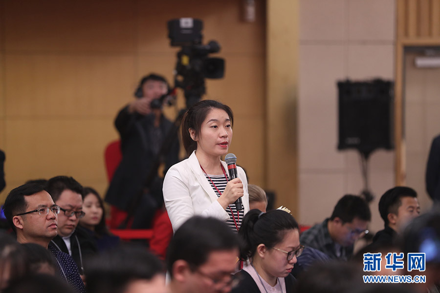 3月12日,十三屆全國人大一次會議新聞中心在梅地亞中心多功能廳舉行記者會,邀請十二屆全國人大內司委副主任委員王勝明、財經委副主任委員烏日圖、教科文衛委副主任委員吳恒、環資委委員呂彩霞,全國人大常委會法工委副主任王超英、副主任許安標就“人大立法工作”相關問題回答中外記者提問。圖為中央電視臺記者提問。新華網/中國政府網 翟子赫 攝