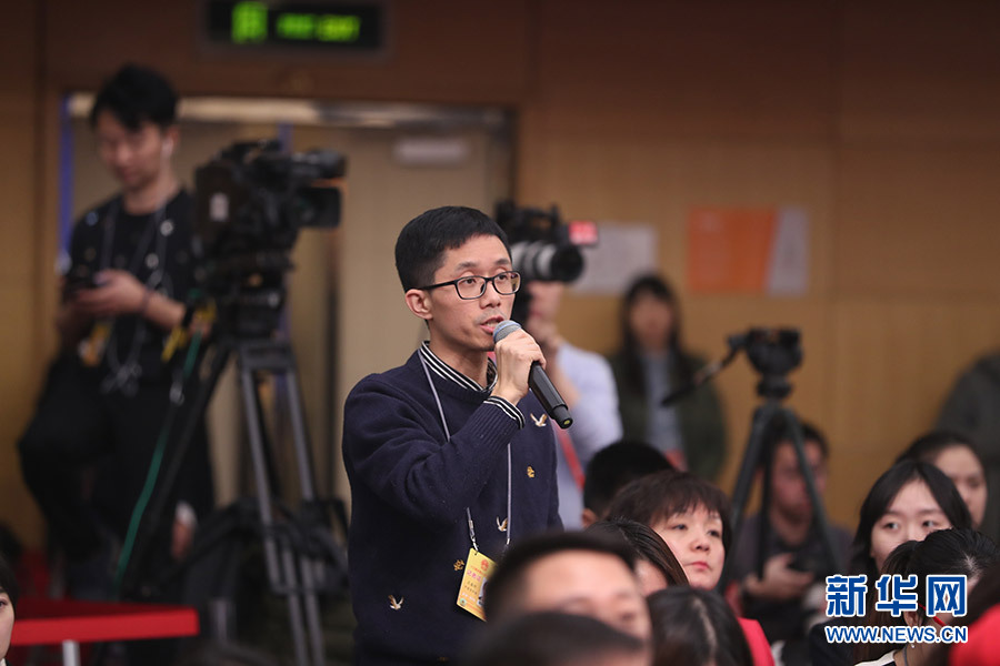 3月12日,十三屆全國人大一次會議新聞中心在梅地亞中心多功能廳舉行記者會,邀請十二屆全國人大內司委副主任委員王勝明、財經委副主任委員烏日圖、教科文衛委副主任委員吳恒、環資委委員呂彩霞,全國人大常委會法工委副主任王超英、副主任許安標就“人大立法工作”相關問題回答中外記者提問。圖為中國青年報記者提問。新華網/中國政府網 翟子赫 攝